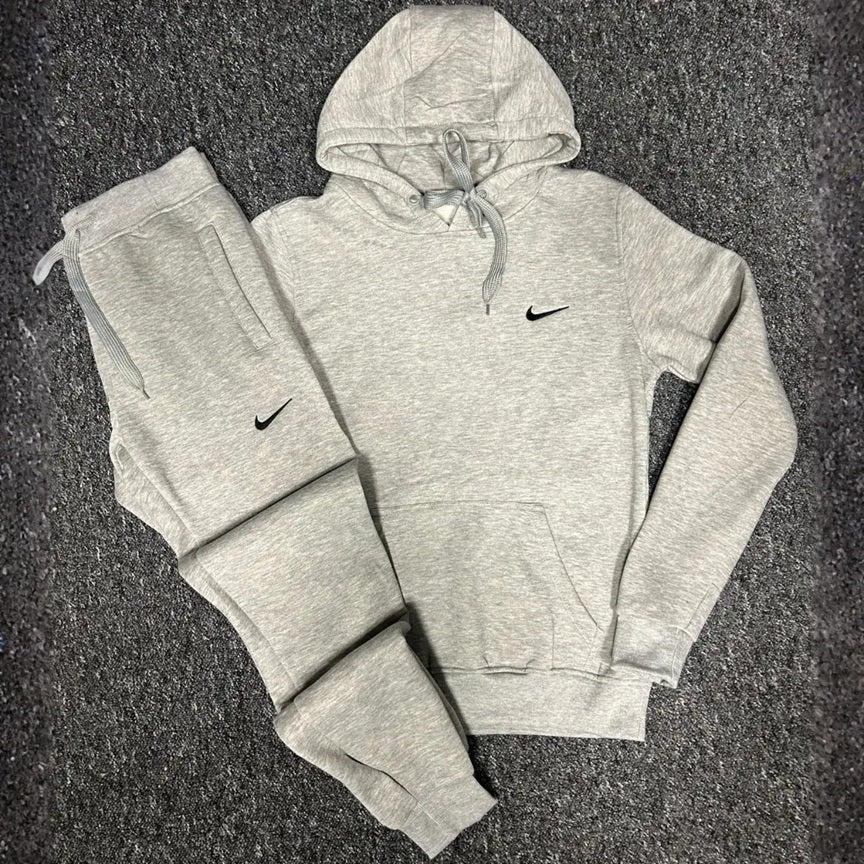 Ten zestaw składa się bluzy z kapturem oraz spodni dresowych w tym samym kolorze. Obydwa elementy mają minimalistyczny design i są ozdobione logo (Szyte Logo). Całość tworzy komfortowy, codzienny komplet w sportowym stylu, odpowiedni do noszenia na trening, do szkoły lub po prostu na co dzień.